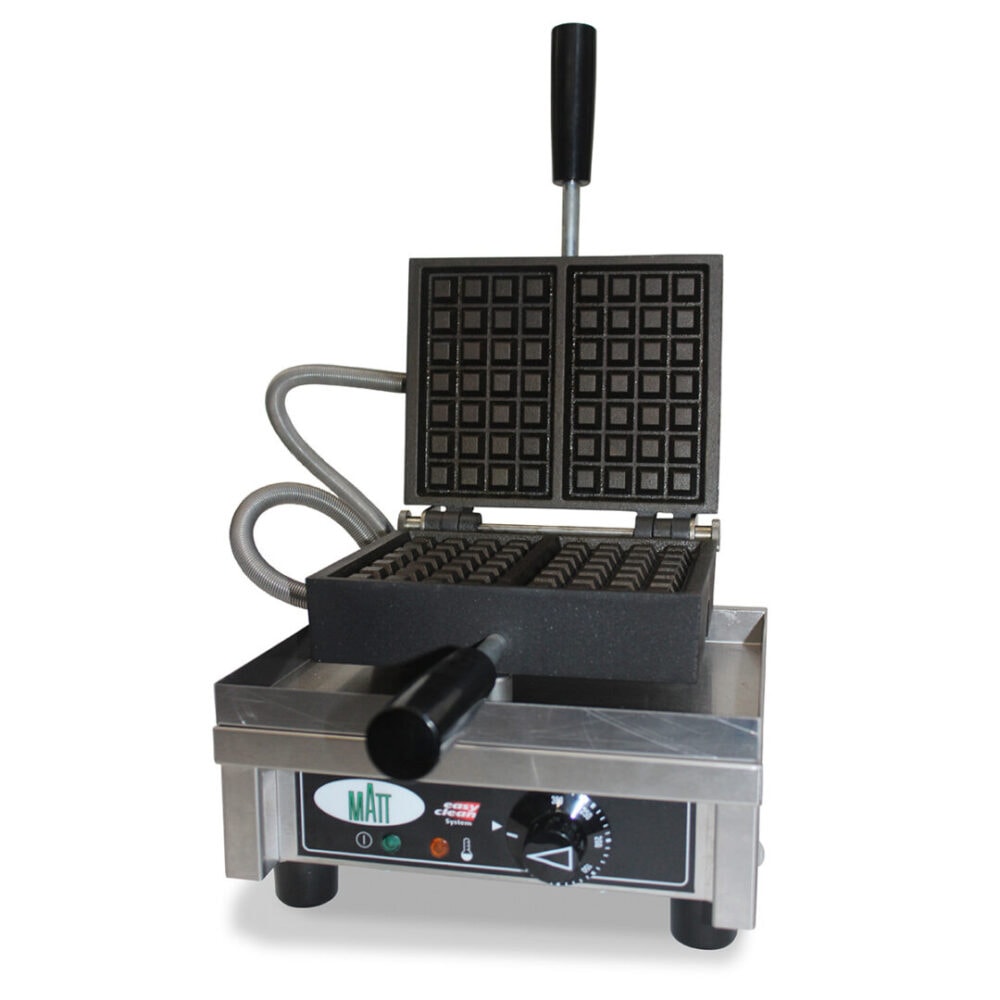 This typical ‘ Nero-waffle ‘ is perfectly baked in a 4 x 7 waffle iron